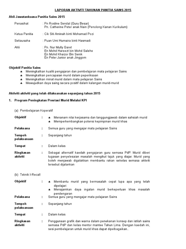 Laporan Aktiviti Tahunan Panitia Sains Pdf